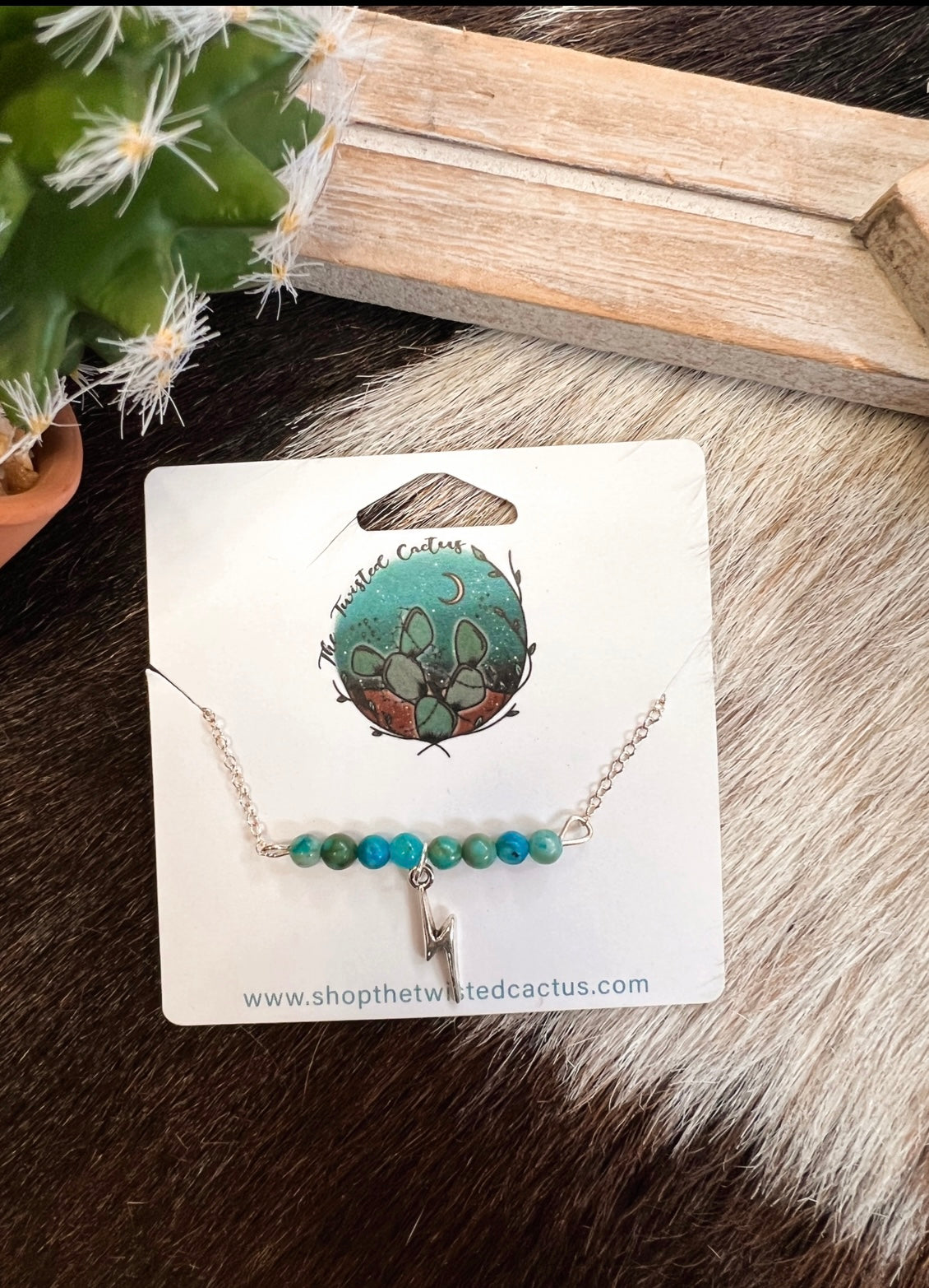 Super cute chain necklace with turquoise beads & a simple lightening bolt charm