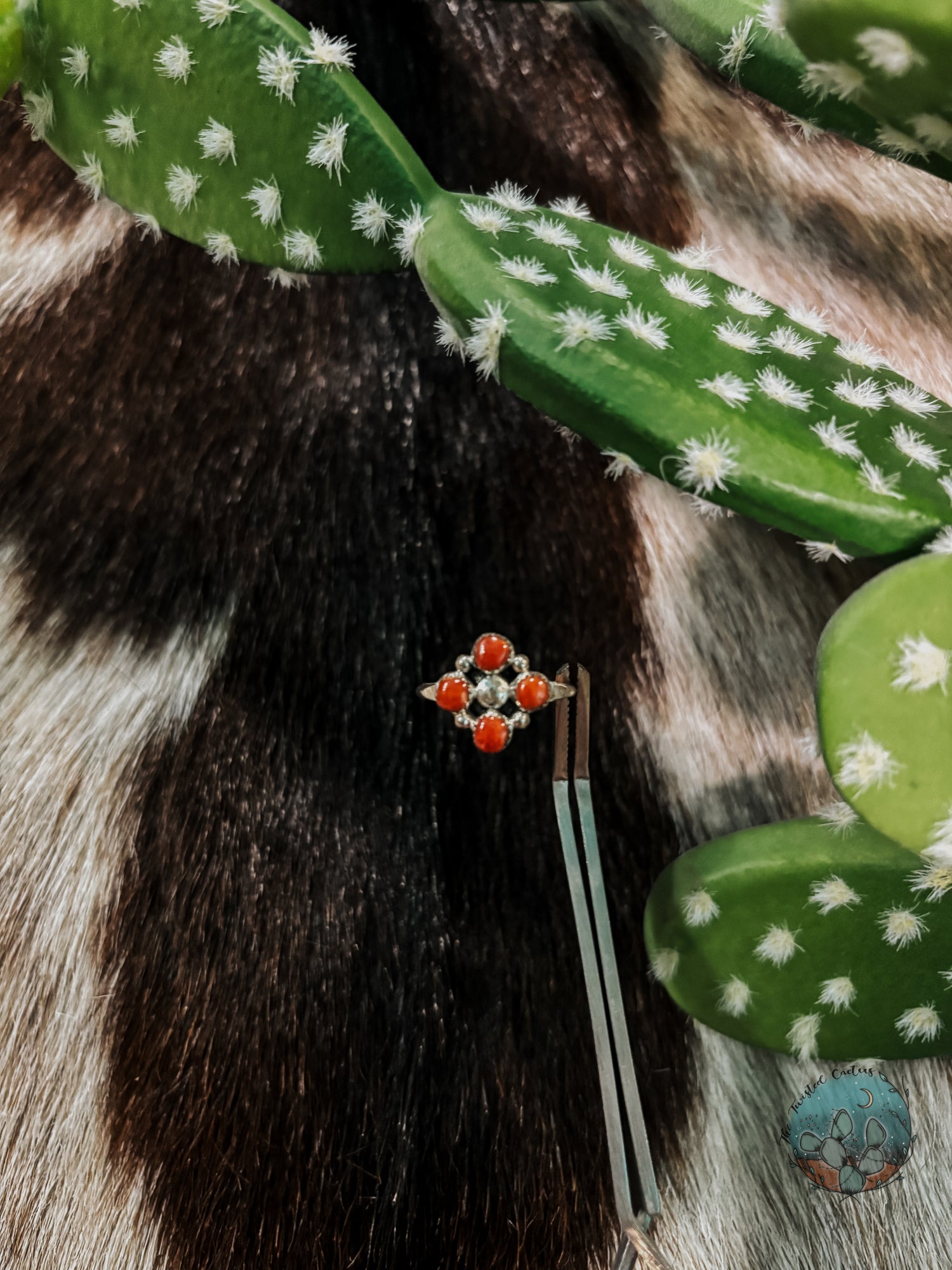 Zuni coral ring made by Zuni artist Maxine Malami. Size 6.5